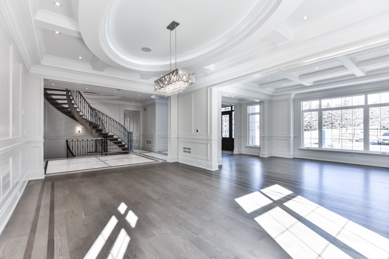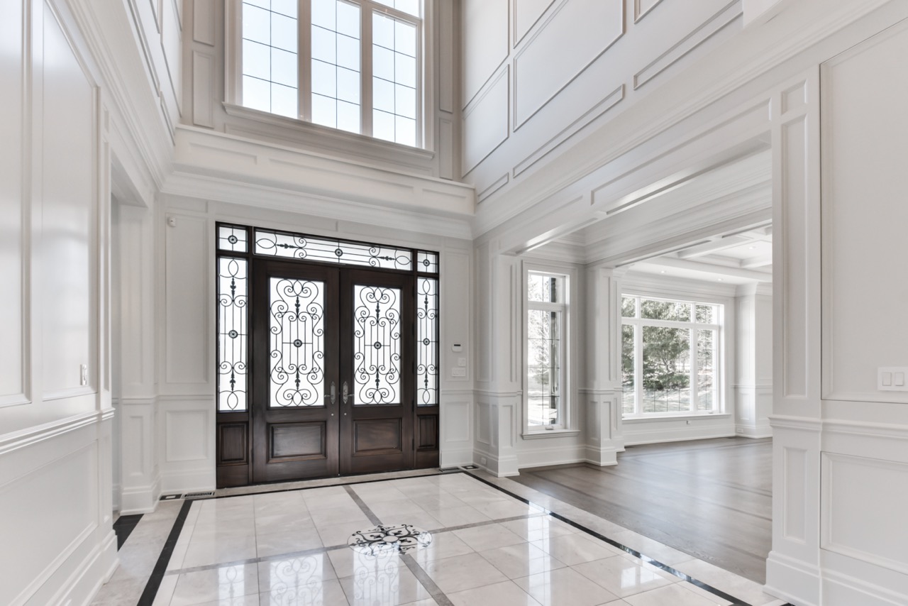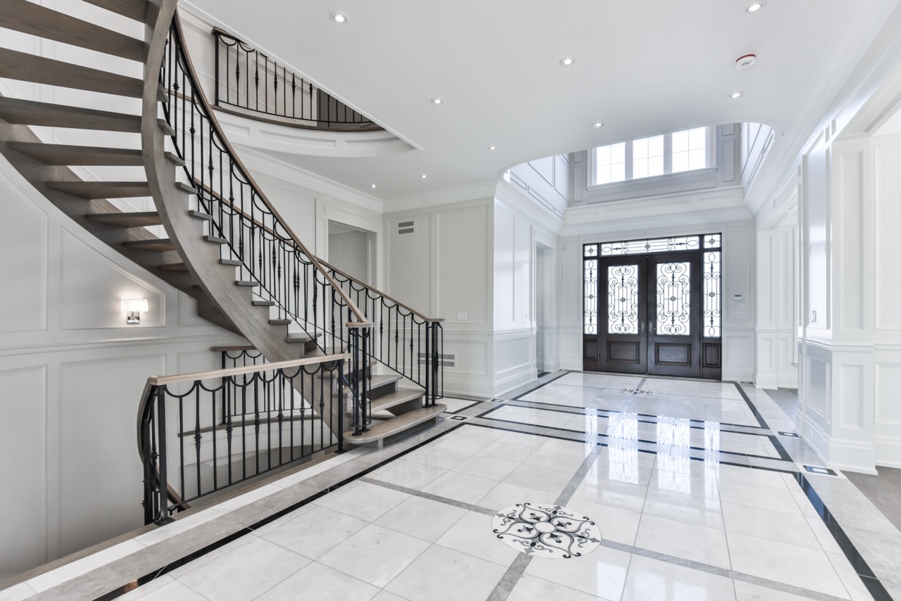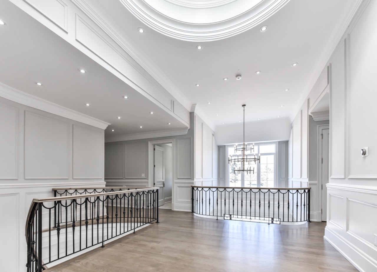 A stunning 7,000 sq. ft. custom transitional estate in North Toronto’s Cachet area, featuring meticulously crafted detailing, dramatic double open-to-above spaces, expansive windows for natural light, and elegant transitional lines blending modern and classic elements. The property is beautifully enclosed by a sophisticated iron fence and grand gated entry, complemented by landscaped gardens and outdoor entertaining areas, creating a harmonious blend of luxury, comfort, and elevated living.