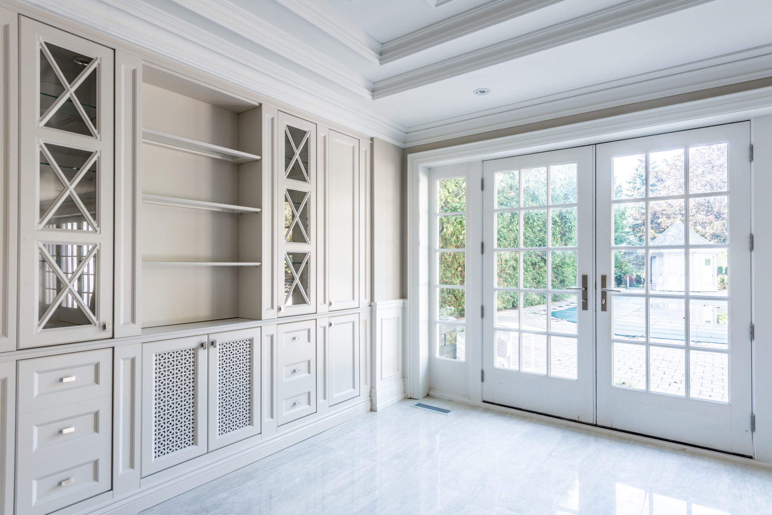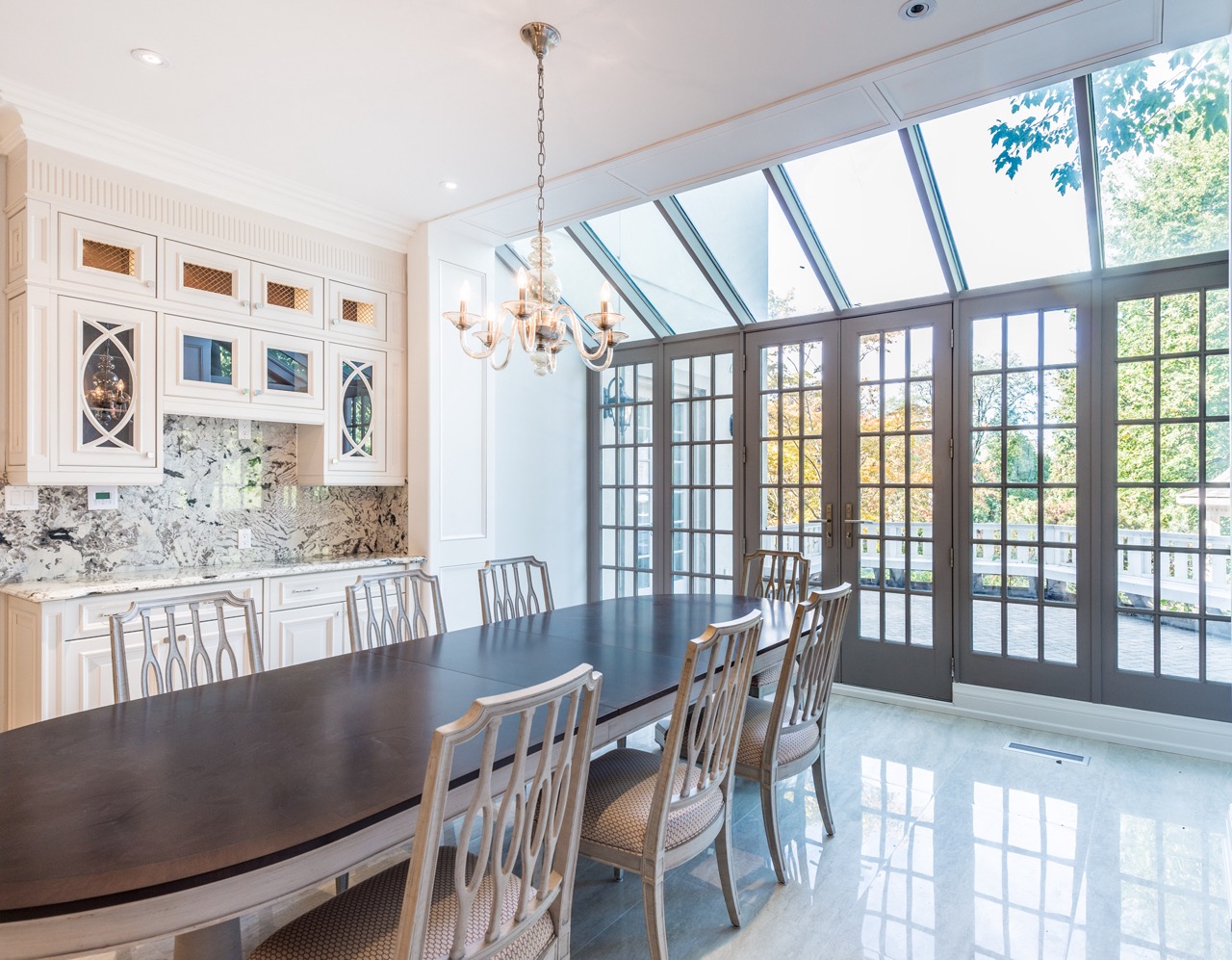 This 10,000 sq. ft. project in the heart of Markham brings new life to a grand residence through a refined New Classic design, marrying timeless architectural lines with modern sophistication. The reimagined home showcases elegant detailing, expansive formal and informal living areas, and a thoughtfully composed aesthetic that balances heritage charm with contemporary comfort. Set on an exceptional lot, the estate is enhanced by a custom swimming pool and a full-sized tennis court, offering a rare combination of prestige, recreation, and resort-style living.