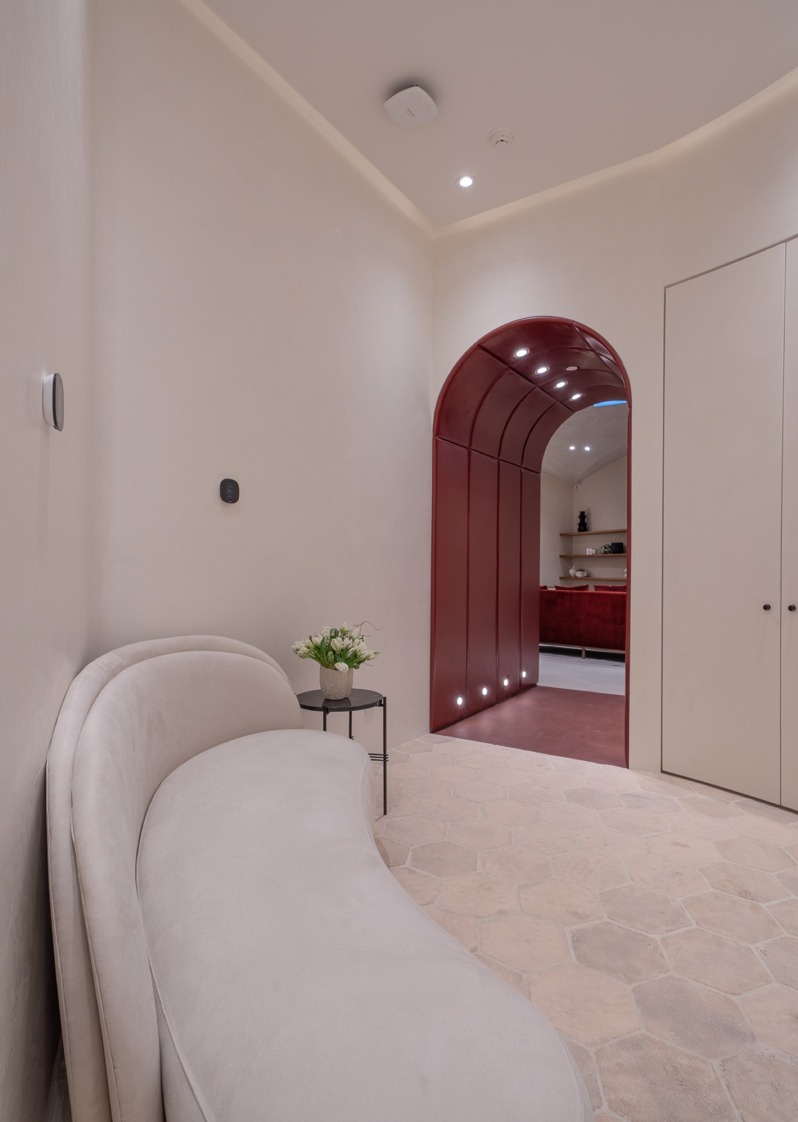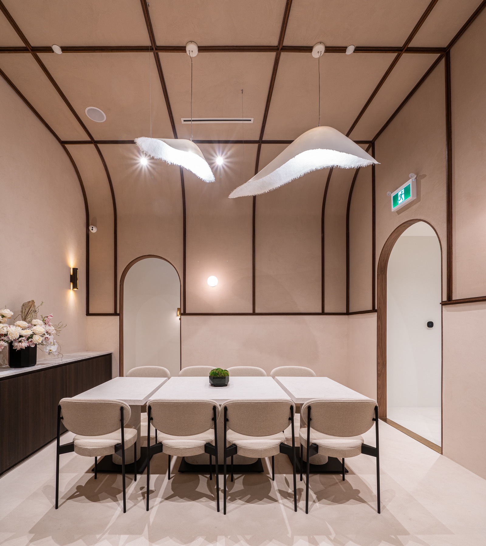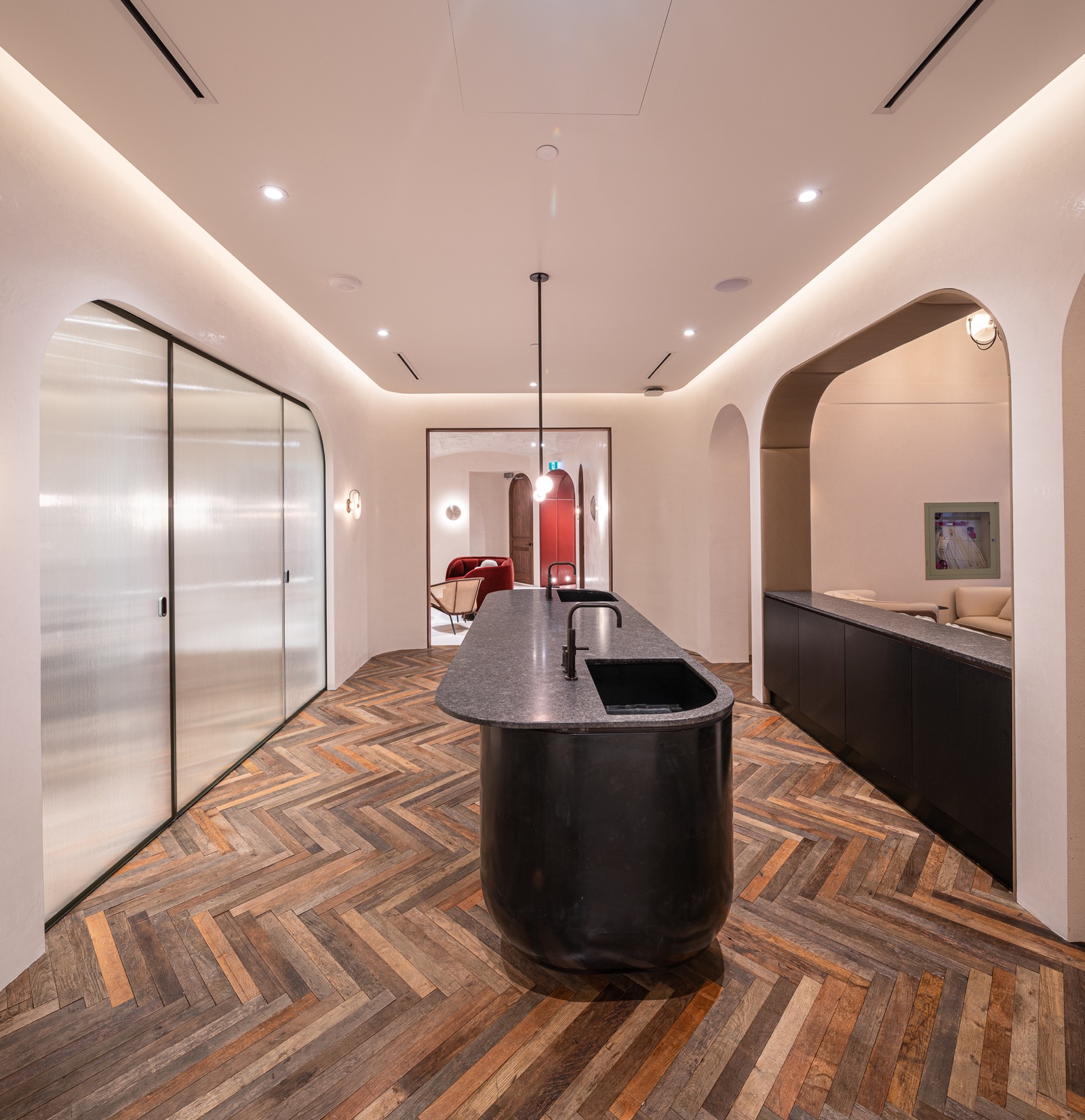 This 6,000-square-foot luxury spa renovation reimagines the space as an immersive sanctuary defined by exquisite architectural design. A sweeping dome ceiling introduces the spa’s sense of grandeur, complemented by artisanal Venetian plaster that softens and enriches each room. The reception area is anchored by a custom Italian marble desk and matching makeup tables, while a monolithic Krion bar island with seamlessly integrated sinks enhances the lounge. The wellness zone includes both a steam sauna and a dry sauna, offering a complete thermal experience. With carefully selected materials imported from the U.S. and Europe, the spa embodies craftsmanship, serenity, and world-class luxury.